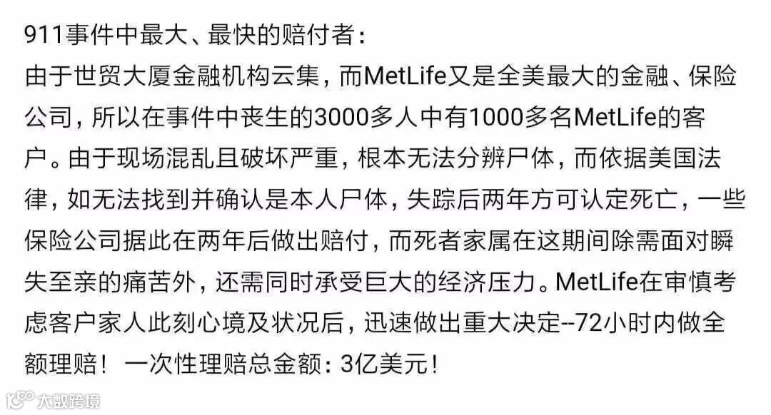 911纪念日,METLIFE晒出72小时理赔3亿美元的实力!其用心路人皆知,相信你也GET到了吧。