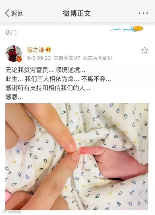 “无论我贫穷富贵顺境逆境,此生, 我们三人相依为命, 不离不弃。感谢所有支持和相信我们的人。感恩。 ”