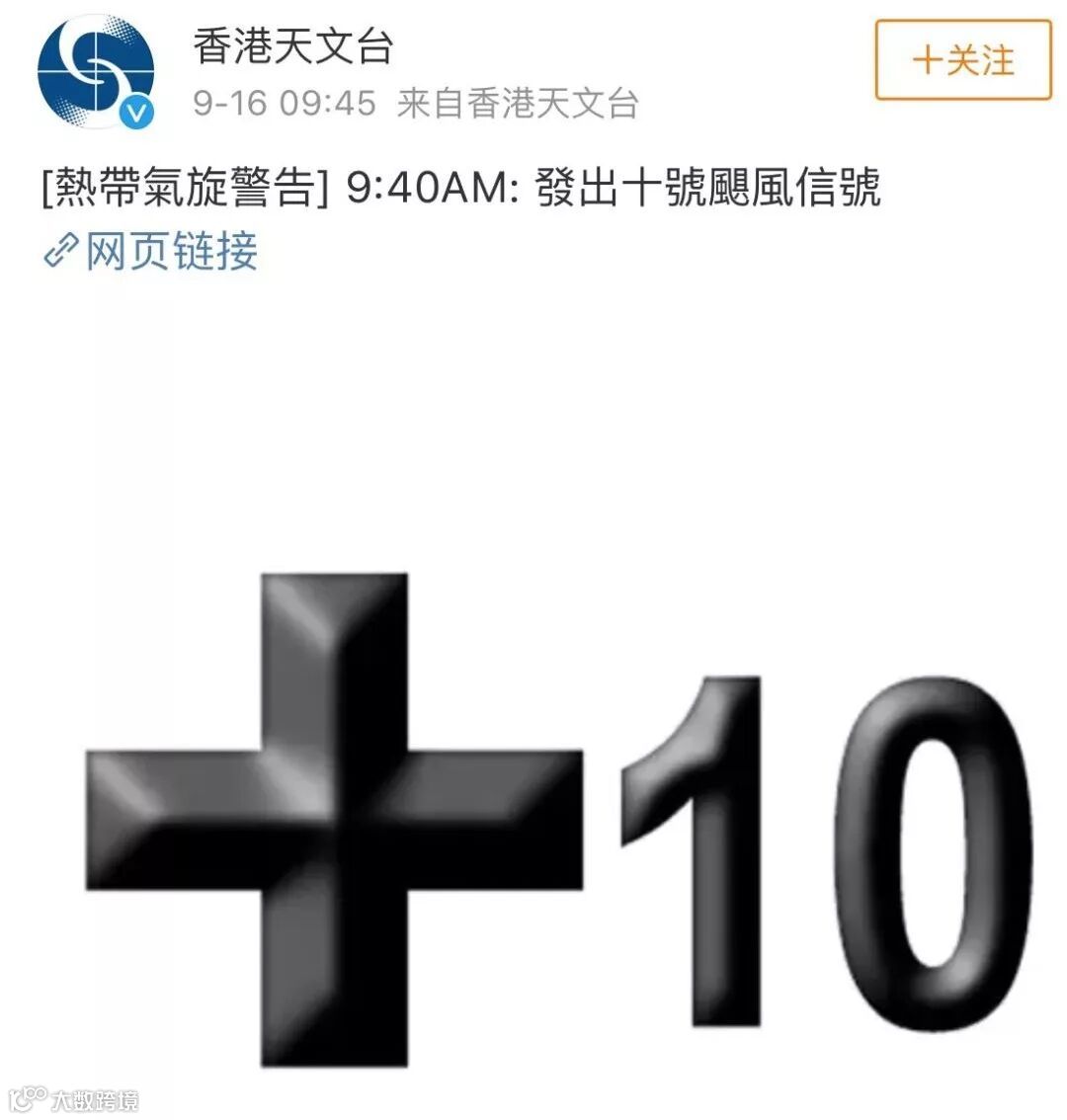 今天上午9点,香港天文台发布十号飓风信号。