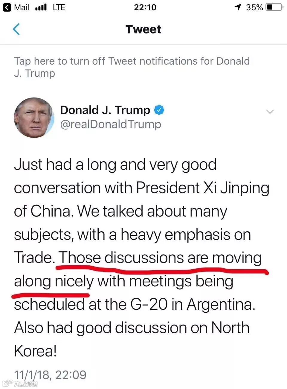 特朗普说,美方重视美中经贸合作,愿继续扩大对华出口。两国经济团队有必要加强沟通磋商。习大大称,中美经济团队要加强接触,就双方关切问题开展磋商,推动中美经贸问题达成一个双方都能接受的方案。