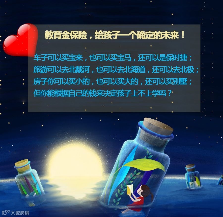 且目前市场上销售的教育险,除初中、高中和大学几个时期的教育基金外,还包括了参加工作以后的创业基金、婚嫁基金甚至还有退休之后的养老基金等,像友邦的【充裕未来3】就是一款非常受欢迎的产品。另外,也应该配置一份重大疾病保险,比如友邦的【加裕智倍保】就是不错的选择!