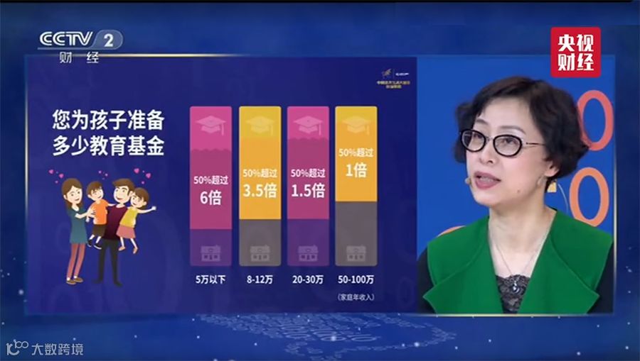 在所有受访者中,我们以家庭收入的不同分成了4类家庭,以家庭收入5万以下的为例,有50%的家庭在为孩子准备教育基金这个问题上,准备的基金已经超过了家庭收入的6倍。在年收入在8-12万的家庭中,这个数据是3.5倍。在年收入是20-30万的家庭中,这个数据是1.5倍,在50万以上的家庭当中,这个数据也超过了1倍。