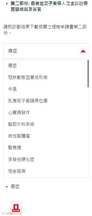 例如癌症(见上图),或直接点击以下网址(癌症):https://www.prudential.com.hk/scws/pages/download/download-center/tc/9-Claims-Forms/CC/Cancer.pdf