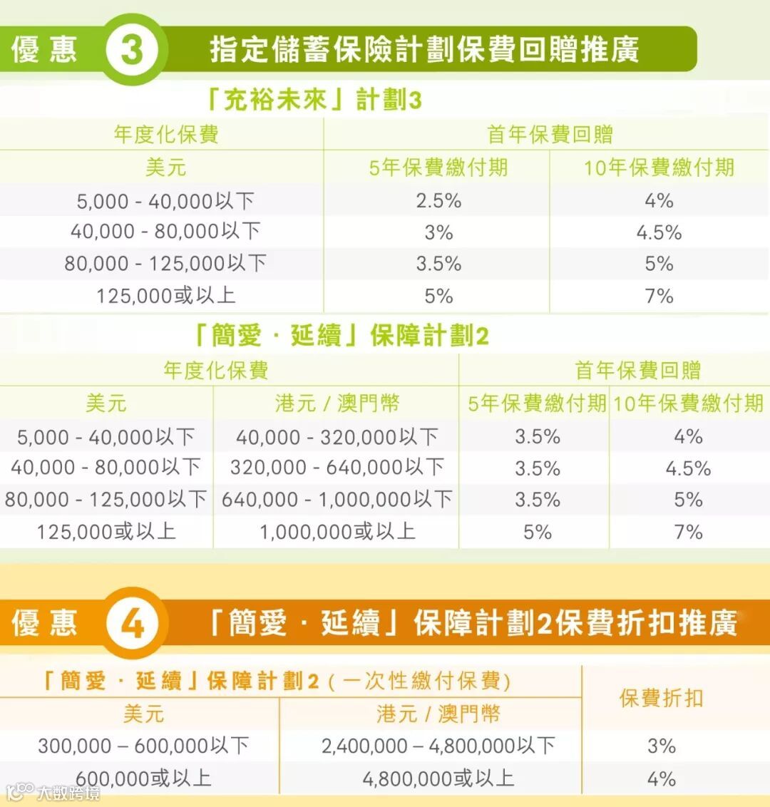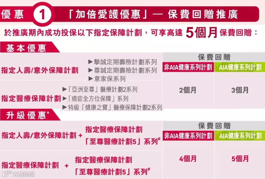 ^ 只适用于同一保单持有人于推广期内投保多于一份指定保障计划。