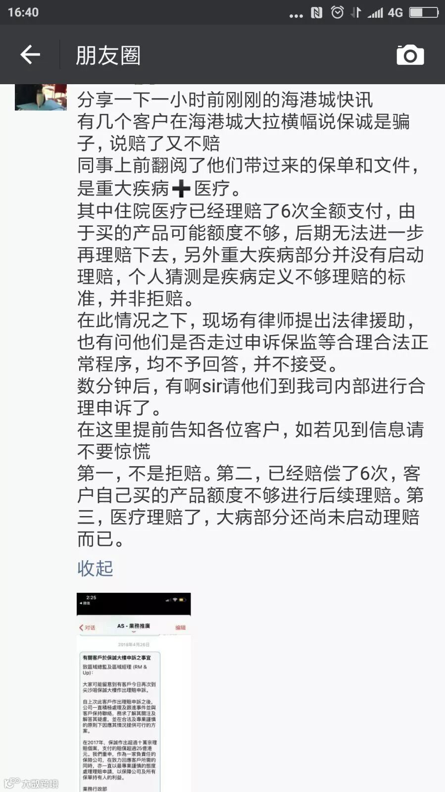 昨天有客户到海港城拉横幅申诉拒赔,迅速被阿Sir制止,这是私家用地禁止聚众取闹,随后被带离现场。