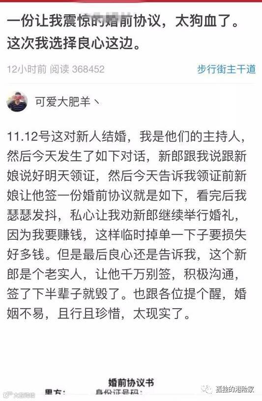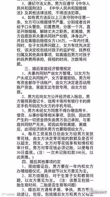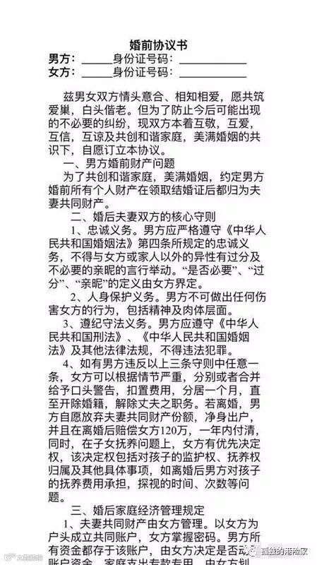 “我主持婚礼好多年了,婚前协议也见过不少,但这份让我震惊了!”近日,江宁波的婚礼主持小可在虎扑论坛发了一份一对新人的婚前协议书,立即引发热议。