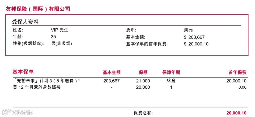 保单持有人及受保人:Ricky Law(35岁 男 不吸烟)