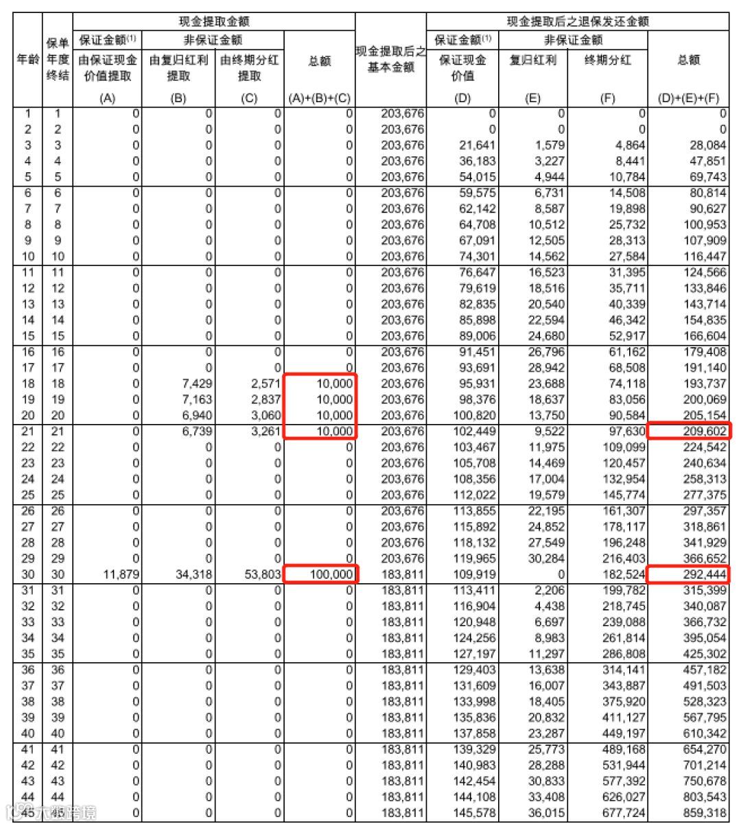 4年共提取现金价值4万美元(此时已取回40%本金)