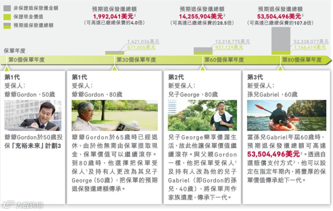 可更改受保人为家人而不影响保单现金价值,真正实现富过三代;