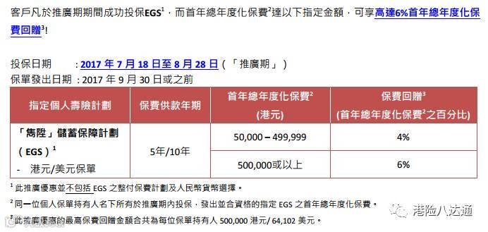 1、全新「隽升」(EGS)保费回赠推广活动: