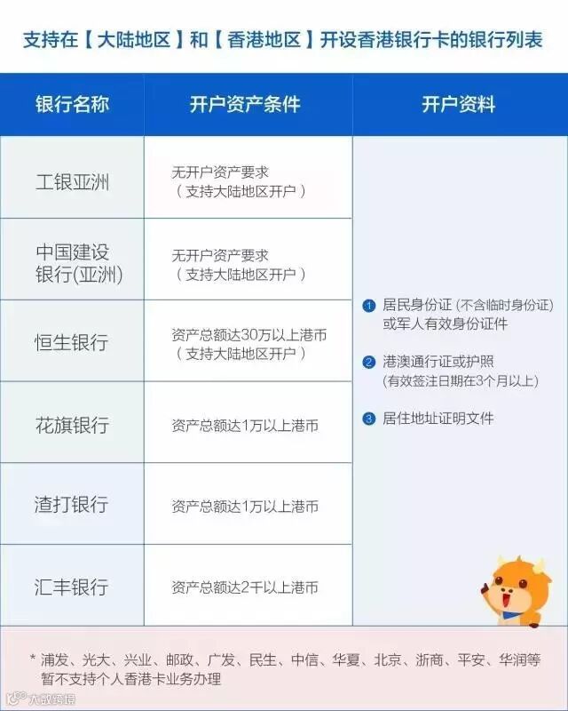 目前可以在大陆或香港开卡的银行可以详见下表: