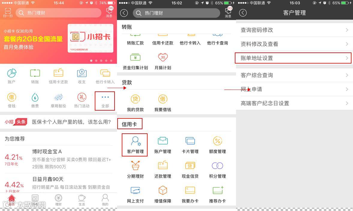 以招商银行为例,首先设置好账单的寄送地址,注意!地址要是住宅类地址(比如XX路XX小区X栋X户),而不能是公司类集体地址(比如XX大道XX大厦)。