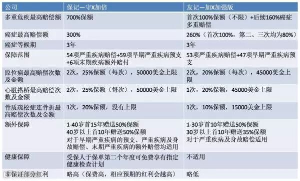 虽然友邦的加X加强版保障不够完美,但是其保费相对便宜,比两家公司单次赔付的重疾产品略贵,比保诚的守X加倍便宜,如何抉择,视乎客户经济情况,如果经济宽裕,想要更大的保障,保诚更胜,如果想要保费便宜,对于保障方面可退而求其次,友邦更胜。