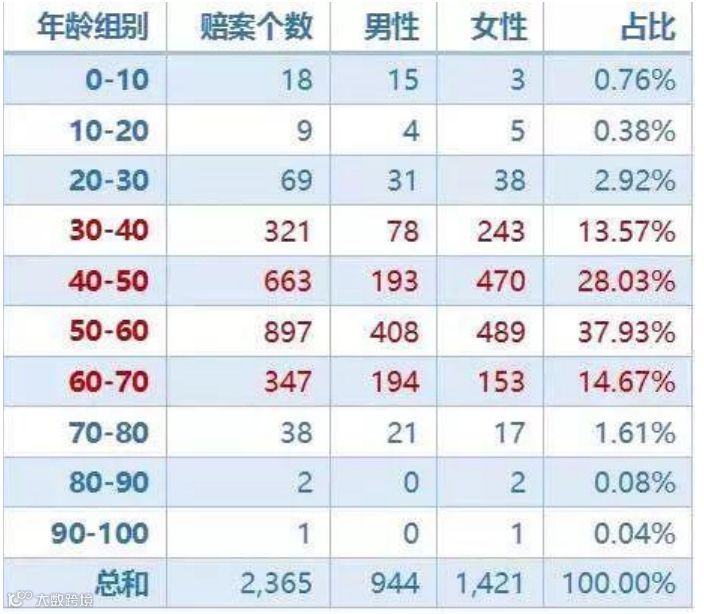 我们来看一下重疾赔付的年龄分布情况:
