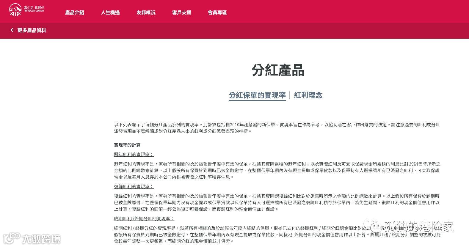 参考:http://www.aia.com.hk/zh-hk/our-products/further-product-information/participating-products/fulfillment-ratio.html