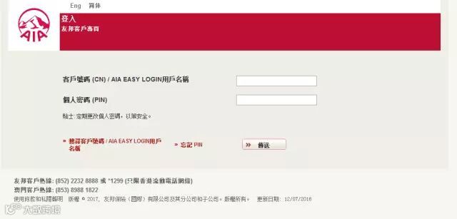 在获取信息后,即可重新进入“登入”页面,输入收到信息的“客户号码”和“个人密码”,即可进入客户专页。进入友邦的电子保单系统。