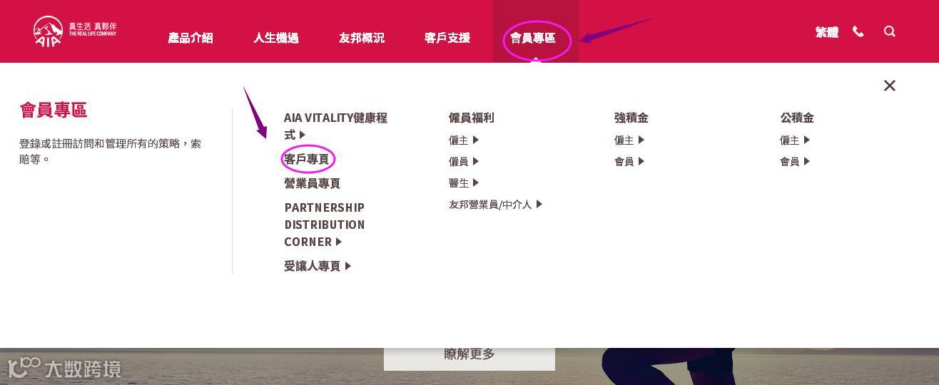 选择“会员专区”里面的“客户专页”,就能进入友邦的电子保单系统;