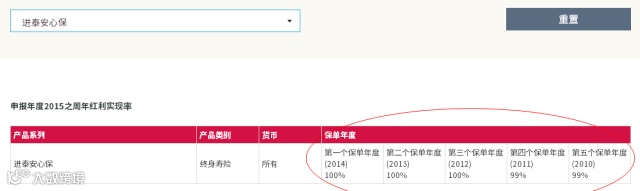 2)如果您看到“第五个保单年度99%”,就是指买了该产品5年的客户,第五年末实现的红利达成率是99%。