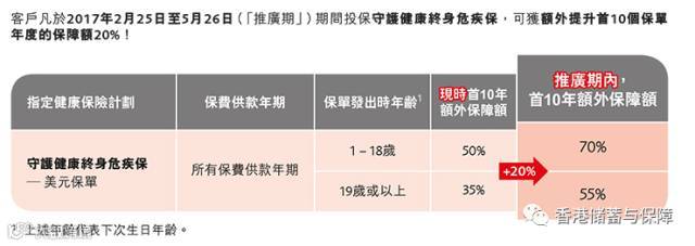 1指定个人寿险计划下的附加保障计划须于推广期内,同时附加于新投保及递交之任何基本计划,方可合资格享有以上之推广优惠。有关合资格详情,请参阅宣传单张所载之条款及细则。