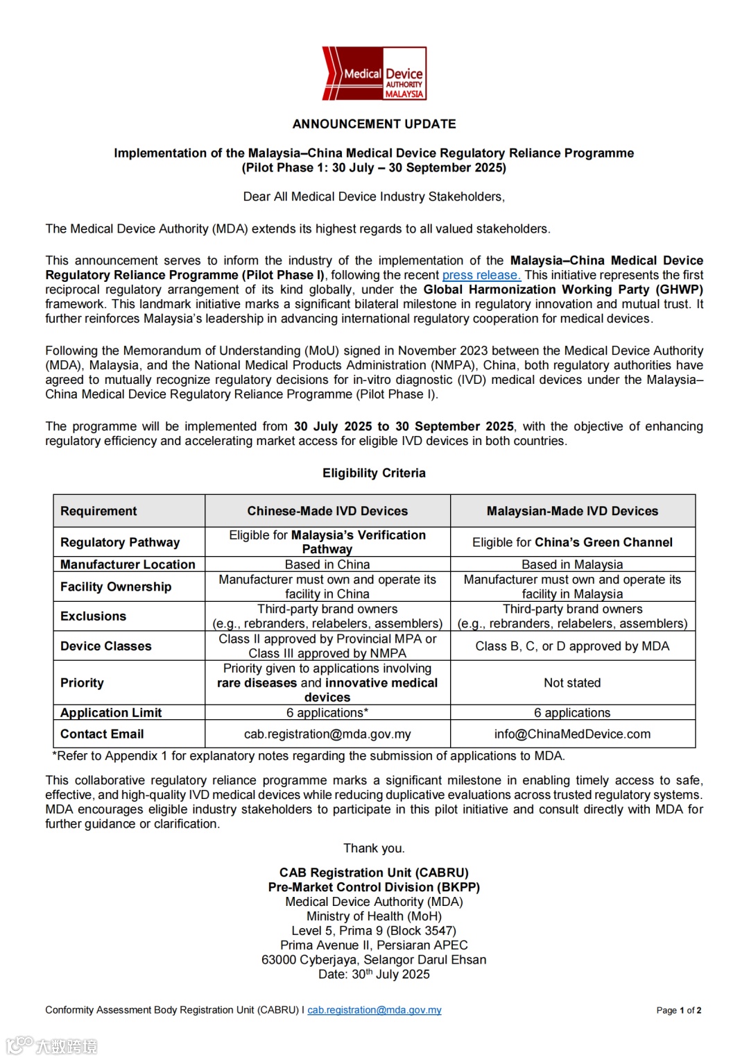 医疗器械出海又迎来重磅利好消息 ——🇨🇳中国与🇲🇾马来西亚医疗器械监管互认计划有了新进展,这对想拓展马来西亚市场的企业来说机遇难得!