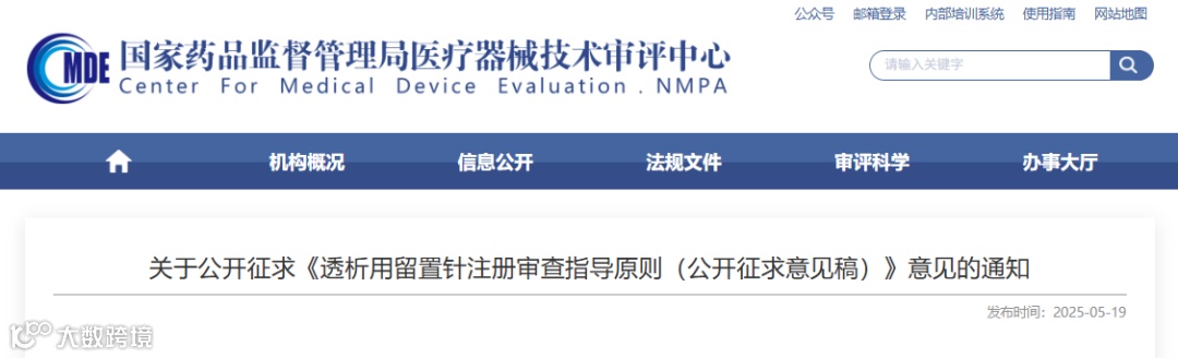 附件:1.《透析用留置针注册审查指导原则(公开征求意见稿)》(下载)