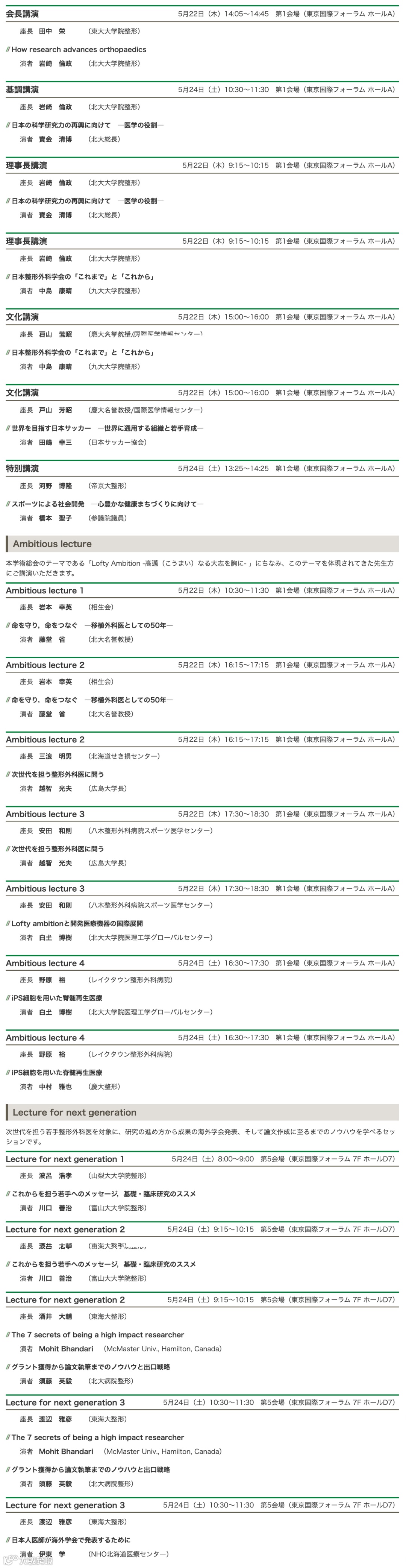 第98届日本骨科协会年会主题是“远大抱负”,在本次年会中,将纳入许多体现和实践“远大抱负”的教授的讲座,并致力于向世界传播基于科学证据的骨科领域的新知识。