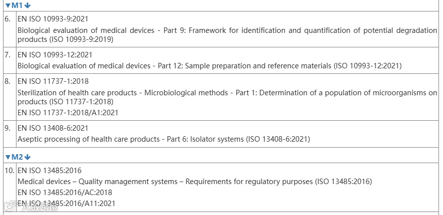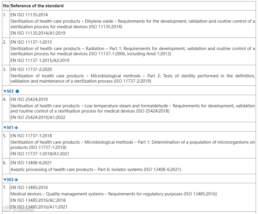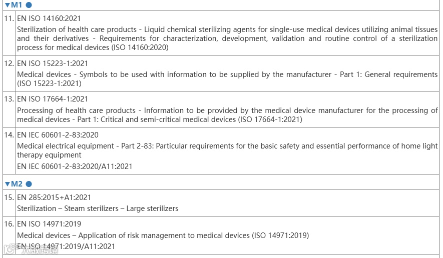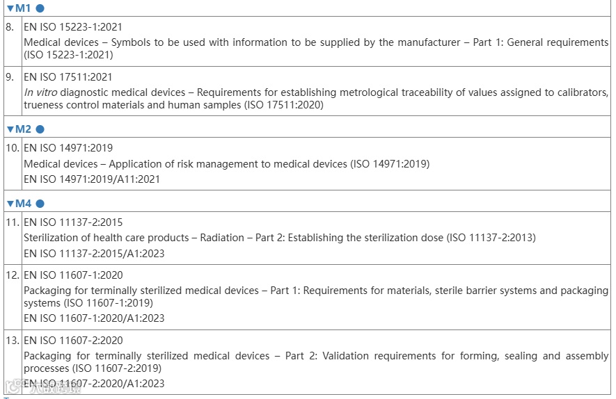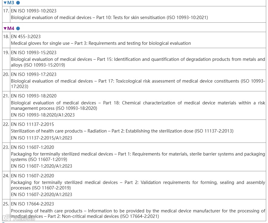 本实施决定更新后,MDR涉及的协调测试标准如下:
