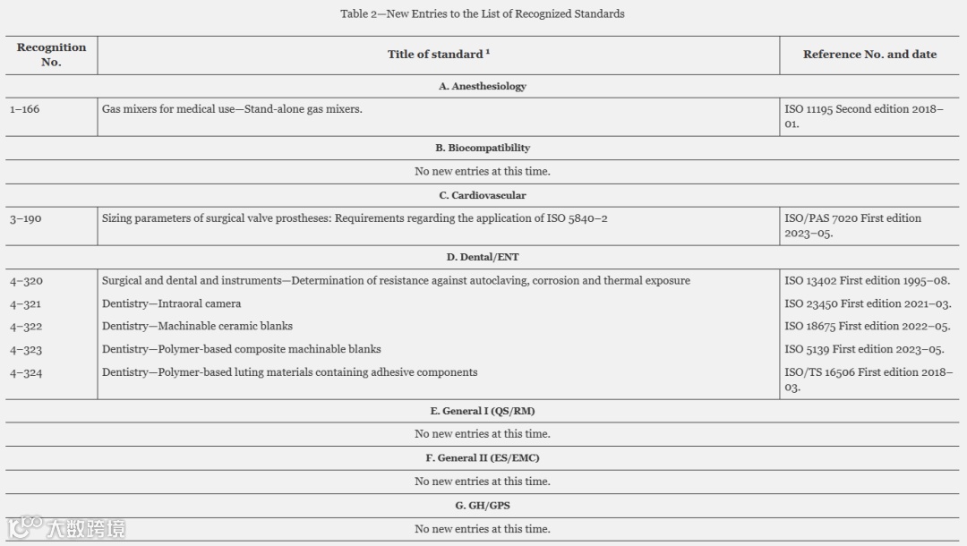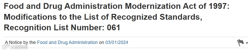 FDA提供了在认可清单编号:061下,作为认可标准列表的修改而增加的新条目和共识标准列表。这些条目是FDA之前未认可的标准。