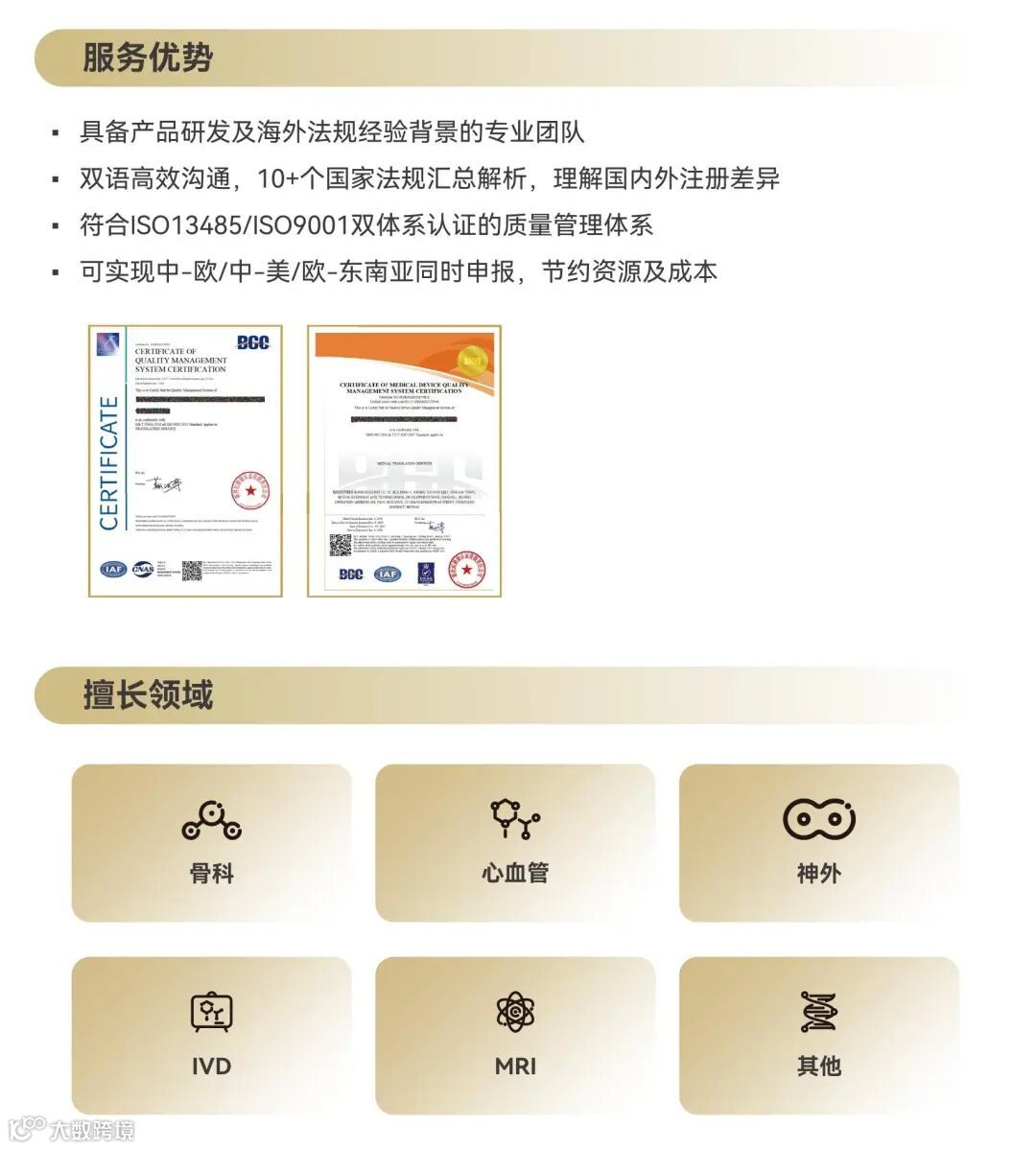 联众博达医疗集团成立于2018年,由业内资深专家携手整合创办,联众博达为医疗企业提供全生命周期增值服务,为国产企业出海及跨国企业进入中国提供一站式市场准入服务;集团拥有丰富的行业资源,业务覆盖骨科、心血管、神经外科、皮肤科、感染性疾病、检验科及放射科等多个医疗细分领域,集团依托国际注册咨询、临床研究、医学翻译、海外展览、经销商推荐及人才猎头等业务,全面支撑企业全球化战略落地。