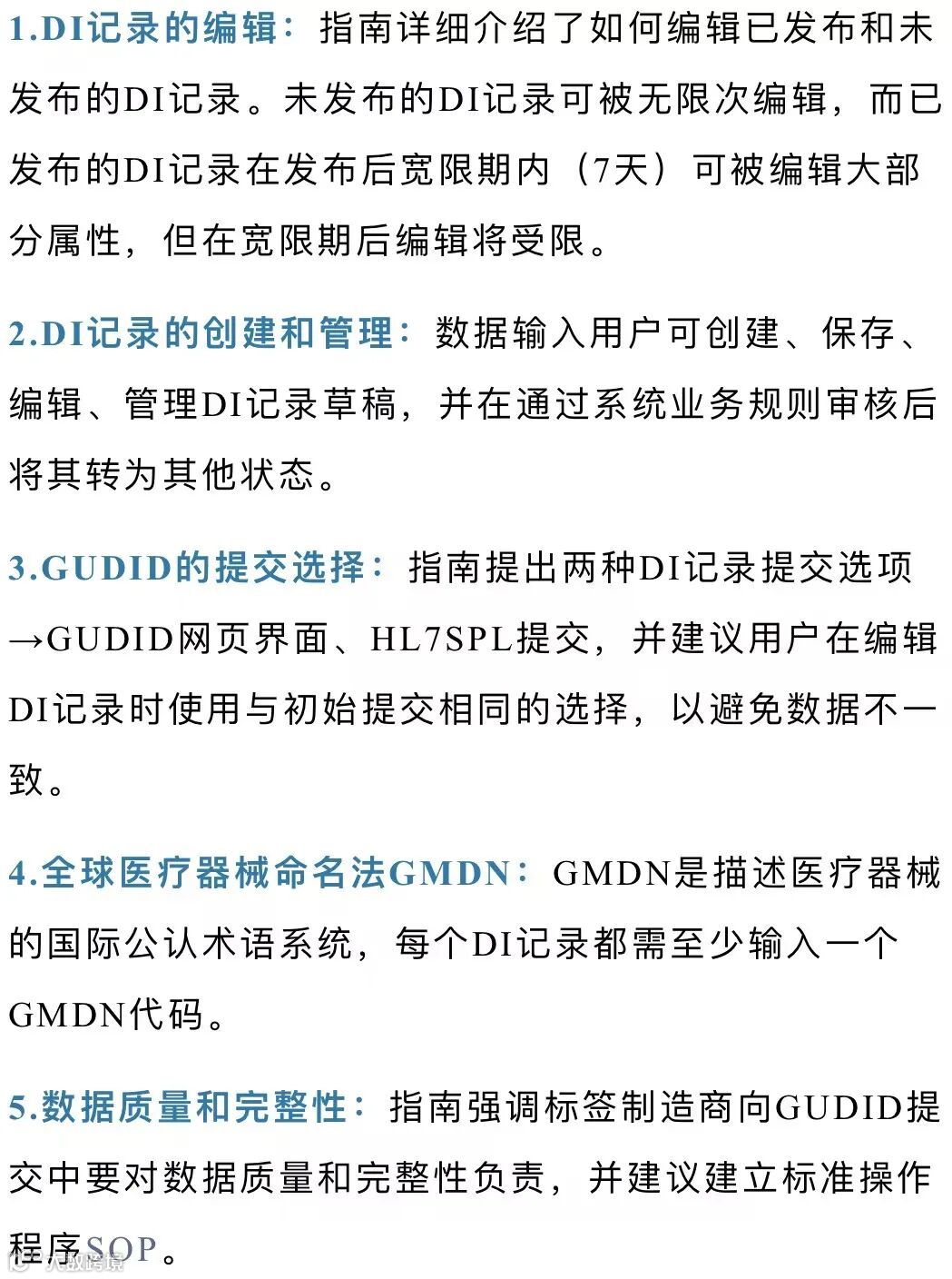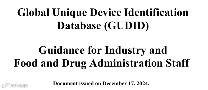 2024年12月17日,FDA发布《全球器械唯一标识数据库(GUDID)》最新指南。该文件初版于2014年6月11日发布,本文件替代2014年6月27日发布的《全球器械唯一标识数据库(GUDID)》。主要描述GUDID的指南,旨在提供器械标识(DI)记录的创建、编辑和管理的详细信息。