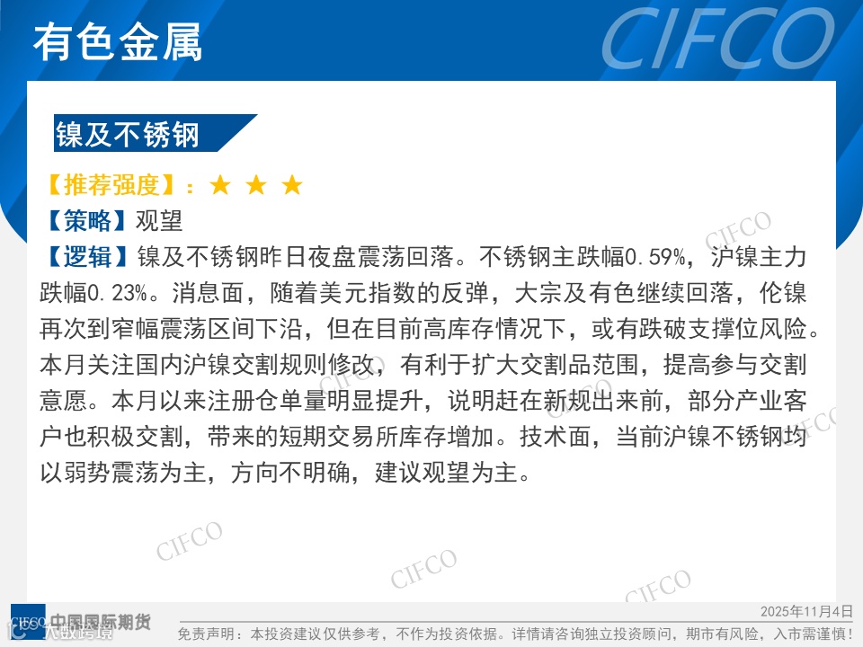 中期早知道 | 沪锌、铸造铝、沪铝、菜粕震荡上涨 甲醇、合成橡胶弱势下跌