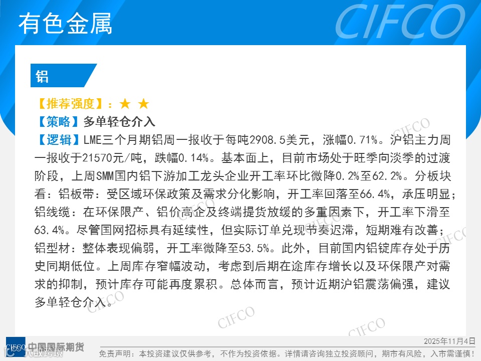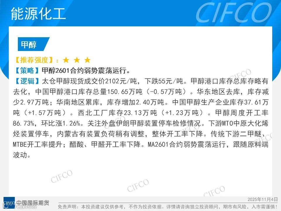 中期早知道 | 沪锌、铸造铝、沪铝、菜粕震荡上涨  甲醇、合成橡胶弱势下跌 中国国际期货福建分公司