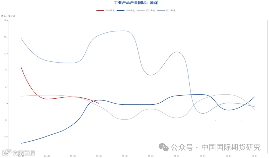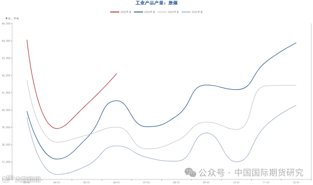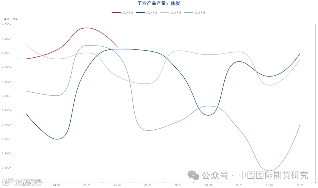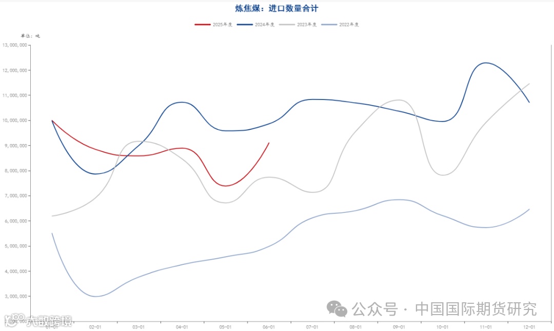 国家统计局最新一期数据显示,6月份,规模以上工业企业原煤产量4.2亿吨,同比增长3.0%,增速比5月份放缓1.2个百分点,日均产量1404万吨。1—6月份,规模以上工业企业原煤产量24.0亿吨,同比增长5.4%。6月份,我国进口煤炭3303.7万吨,较去年同期的4460.3万吨减少1156.6万吨,下降25.9%,较5月份的3604万吨减少300.3万吨,下降8.3%。1-6月份,我国共进口煤炭22170.2万吨,同比下降11.1%。此外,6月份,国内焦炭产量为4170.3万吨,同比下降0.2%;1-6月累计产量24941.2万吨,同比增长3.0%。综合看,上半年双焦供应端依旧保持增长态势,不过6月份增幅有所放缓。