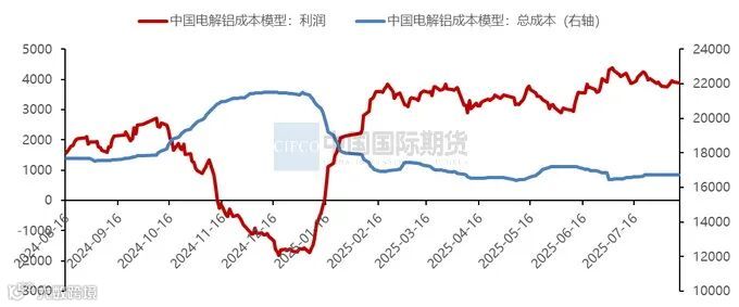 步入8月后,电解铝成本小幅走高的同时,电解铝利润高位整理。截至8月11日,国内电解铝即时成本约16738.04元/吨,较7月初274.22元/吨,较去年同期减少923.23元/吨。截至8月11日,国内电解铝即时利润为3891.96元/吨,较7月初下降424.22元/吨,较去年同期增长2563.23元/吨。从后期成本变动来看,氟化铝:原材料成本高企压缩企业利润空间,企业开工积极性不高,产能利用率偏低,市场供应量缩减。而需求端也表现乏力,采购方心态谨慎,仅维持刚需。供需双弱的背景下,氟化铝价格上涨难度较大,短期以持稳为主;预焙阳极:预焙阳极行业开工率较高,需求稳健,短期预焙阳极价格将处于持稳状态,预焙阳极成本端的支撑较坚挺;氧化铝:在反内卷带来的政策效应边际减弱的同时,8月氧化铝产量增幅将受到新产线存调时间等因素的制约,而氧化铝长单需求相对稳定。因此预计8月氧化铝价格以震荡偏强走势为主。电力:8月电力成本表现以持稳为主。四川部分地区因高温影响,电费有所上涨。此外,近期国家出台《关于2025年可再生能源电力消纳责任权重及有关事项的通知》,细化各省市电解铝消纳绿电比例。目前绿电供应充足,该要求不会对电解铝生产构成影响,但采购绿电或绿证将提升企业成本。综合来看,8月电解铝成本将略有抬升。