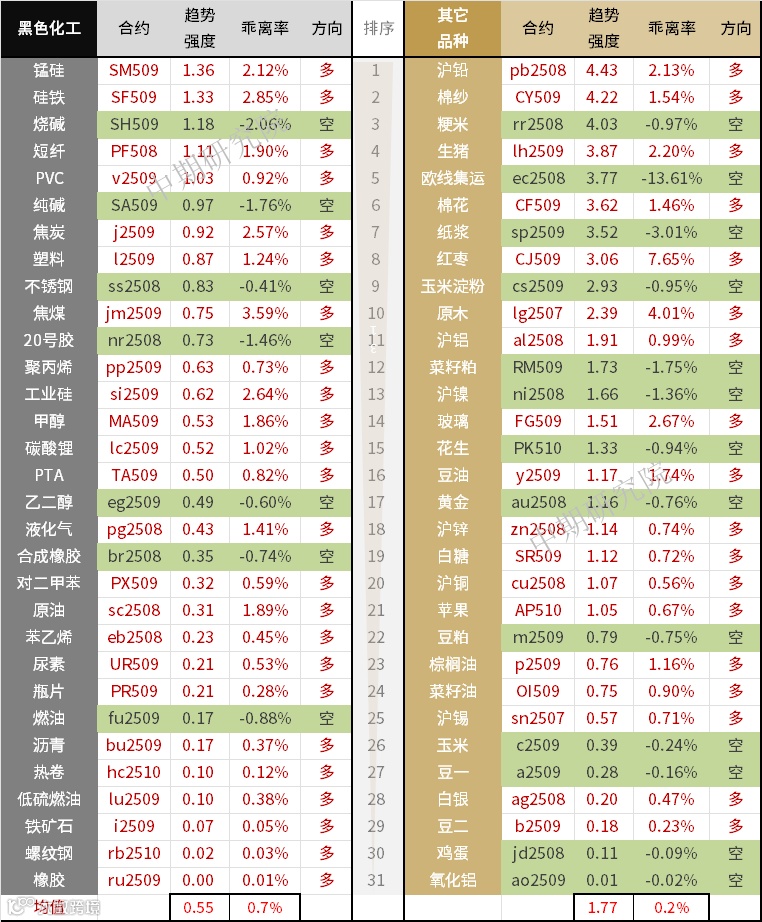 中期商品趋势榜 | 沪铅、棉纱、生猪、棉花多头偏强 粳米、集运欧线、纸浆空头偏强(0625)