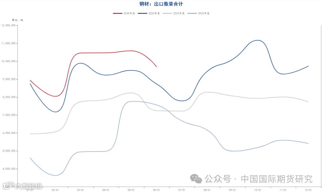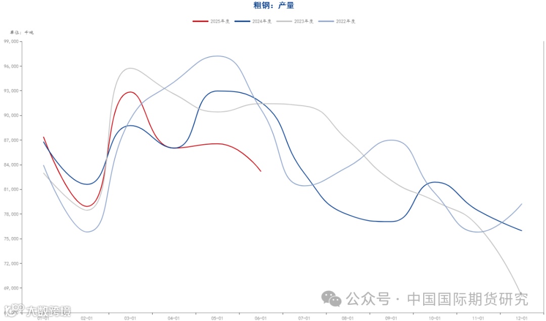 统计局最新一期公布的数据显示,6月份国内粗钢产量8318万吨,同比下降9.2%;生铁产量7191万吨,同比下降4.1%;钢材产量12784万吨,同比增长1.8%。1-6月份,国内粗钢产量51483万吨,同比下降3.0%;生铁产量43468万吨,同比下降0.8%;钢材产量73438万吨,同比增长4.6%。此外,钢联高频数据显示,最新一期的247家钢厂日均铁水产量240.71万吨,环比上一期减少1.52万吨,降幅0.63%。目前看,由于当前钢厂利润小幅回落,叠加近期钢材消费进入到传统的淡季,后续铁水产量或仍有进一步回落的可能。