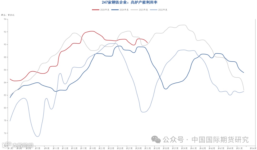 图2-14:247家钢铁企业高炉产能利用率(%)