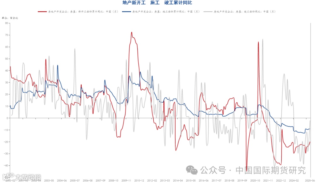 图2-5:地产新开工施工竣工累计同比(%)