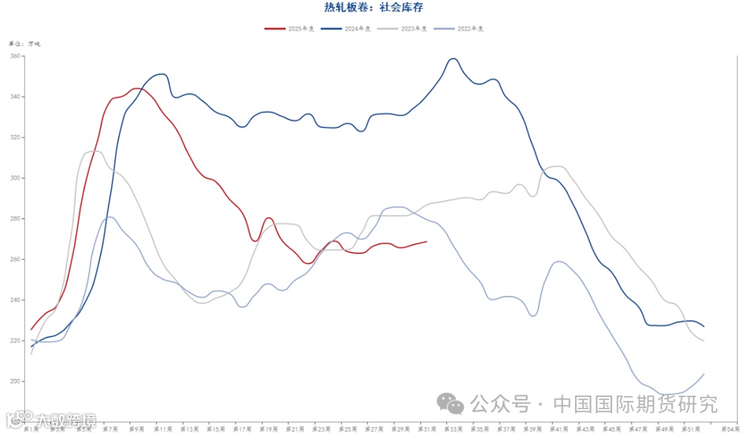 分区域看,建材方面,以螺纹钢为例,从三大区域来看,华东、南方和北方周环比分别累库5.22万吨、4.73万吨和1.22万吨。热卷方面,从三大区域来看,北方周环比去库0.05万吨,华东、南方分别累库1.22万吨、0.34万吨,从七大区域来看,除华中、西南及东北外,其他区域均呈现累库状态。