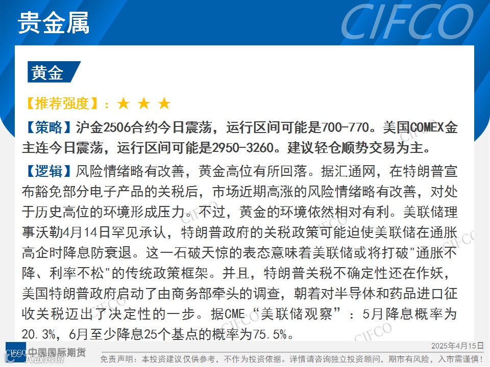 中期早知道 | 黄金、生猪、豆一、鸡蛋震荡上涨  工业硅、焦煤弱势下跌 中国国际期货福建分公司