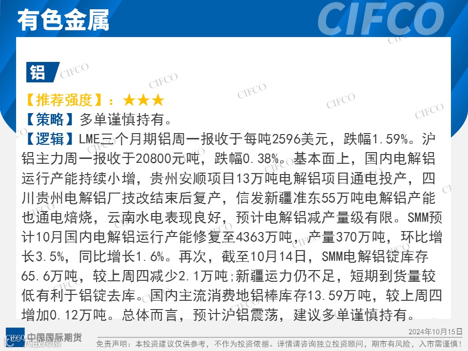 中期早知道 | 氧化铝震荡上涨  生猪弱势下跌 中国国际期货福建分公司