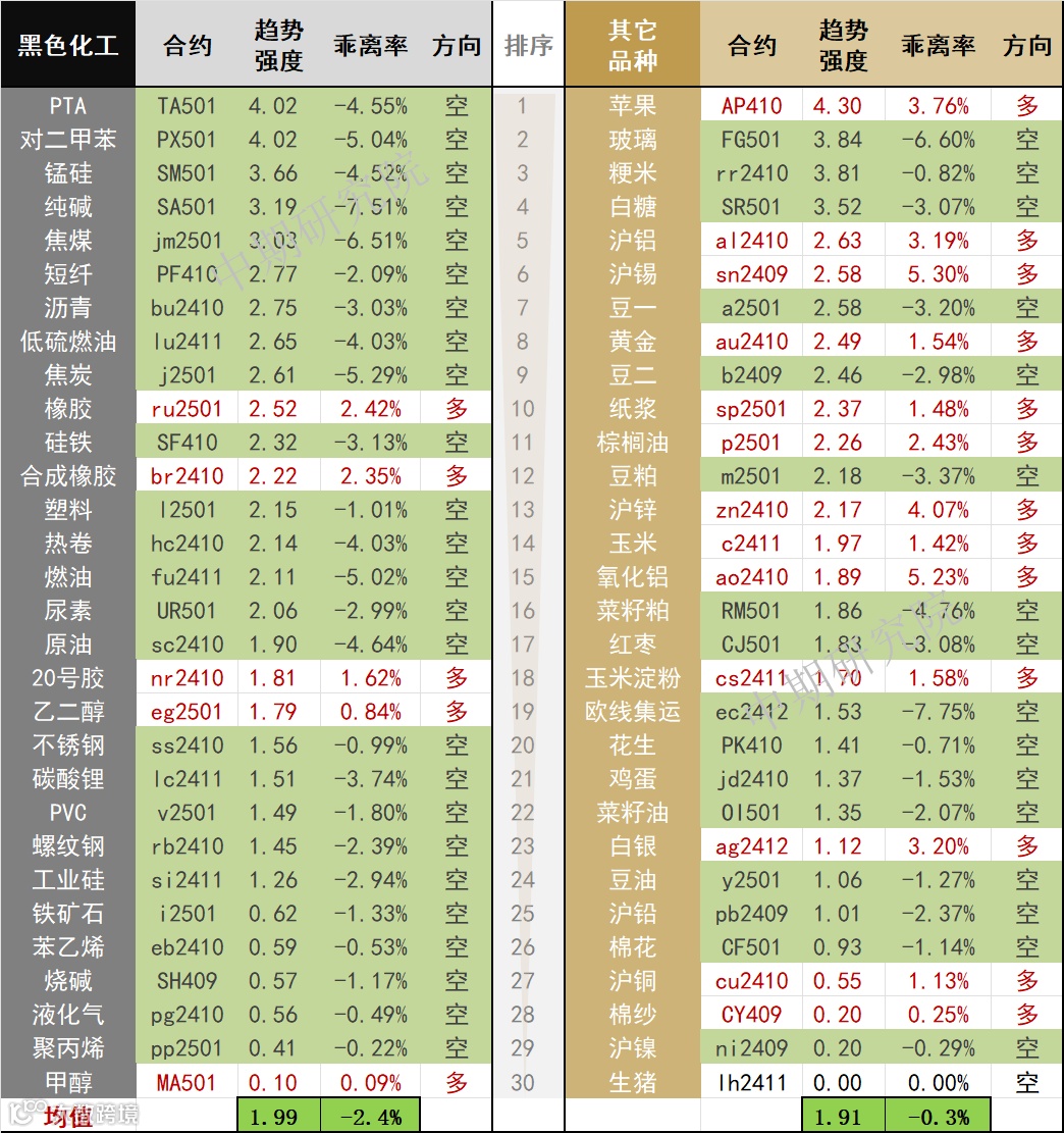 中期商品趋势榜 | 苹果多头偏强 PTA、对二甲苯、玻璃空头强势(0822)
