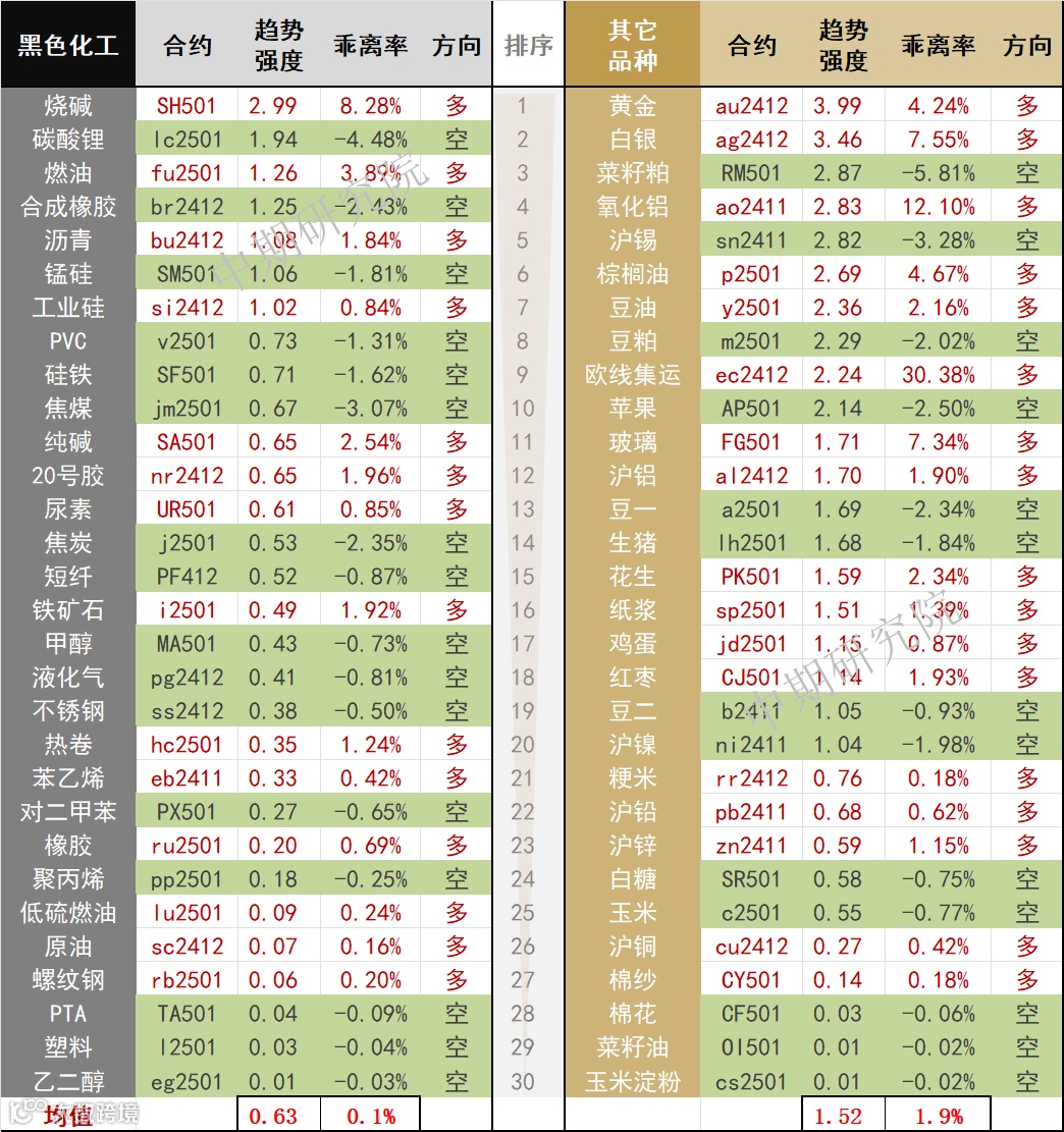 中期商品趋势榜 | 黄金、白银、氧化铝多头偏强 菜粕空头持续 (1022)