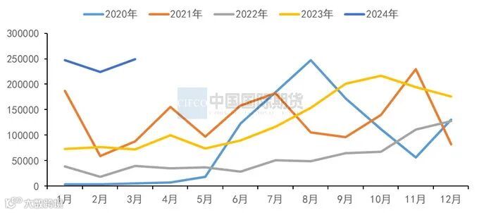 虽然中国电解铝在全球电解铝产量中的占比超过一半,但我国仍需要从国外进口部分电解铝以弥补工业产业链的短板。从电解铝进口情况来看,据海关总署数据显示,今年3月中国电解铝进口量为24.9万吨,同比增长245.9%。1-3月中国电解铝累计进口72.1万吨,同比增长224.8%。进口货源除俄铝之外,其他地区铝锭流入量预计大幅减少。近期国内铝进口窗口依旧未能开启,海内外比价虽略有修复,但大部分海外铝锭难以倒挂流入到国内,保税区库存延续增长。国内现货市场面临的海外铝锭冲击下降,进口环比或将减少,这对国内铝锭去库较为有利。