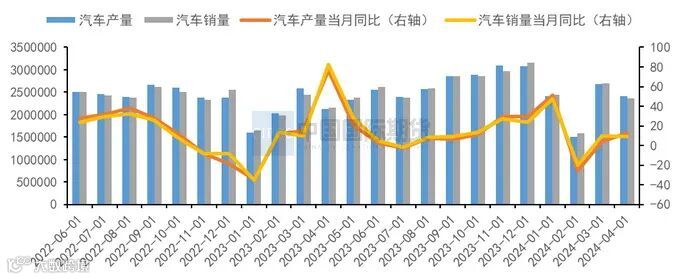 4月我国经济景气总水平延续扩张,企业发展信心保持稳定,推动汽车产销同环比增长。4月我国汽车产销量达240.6万辆和235.9万辆,环比分别下降10.5%和12.5%,同比分别增长12.8%和9.3%,同比呈现较快增长。1至4月我国汽车产销量达901.2万辆和907.9万辆,同比分别增长7.9%和10.2%,保持稳步增长态势。