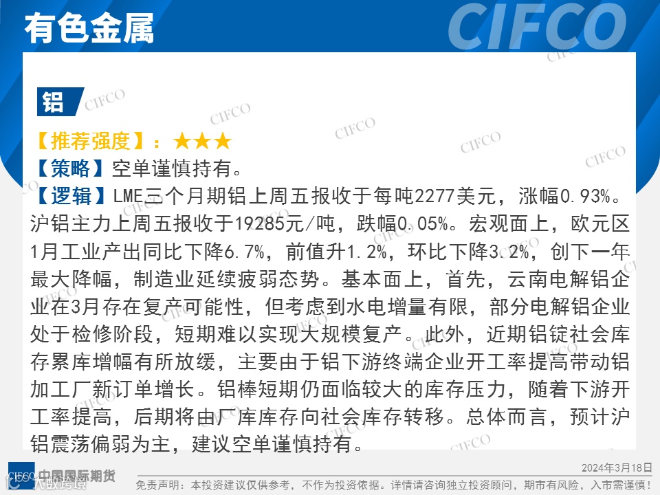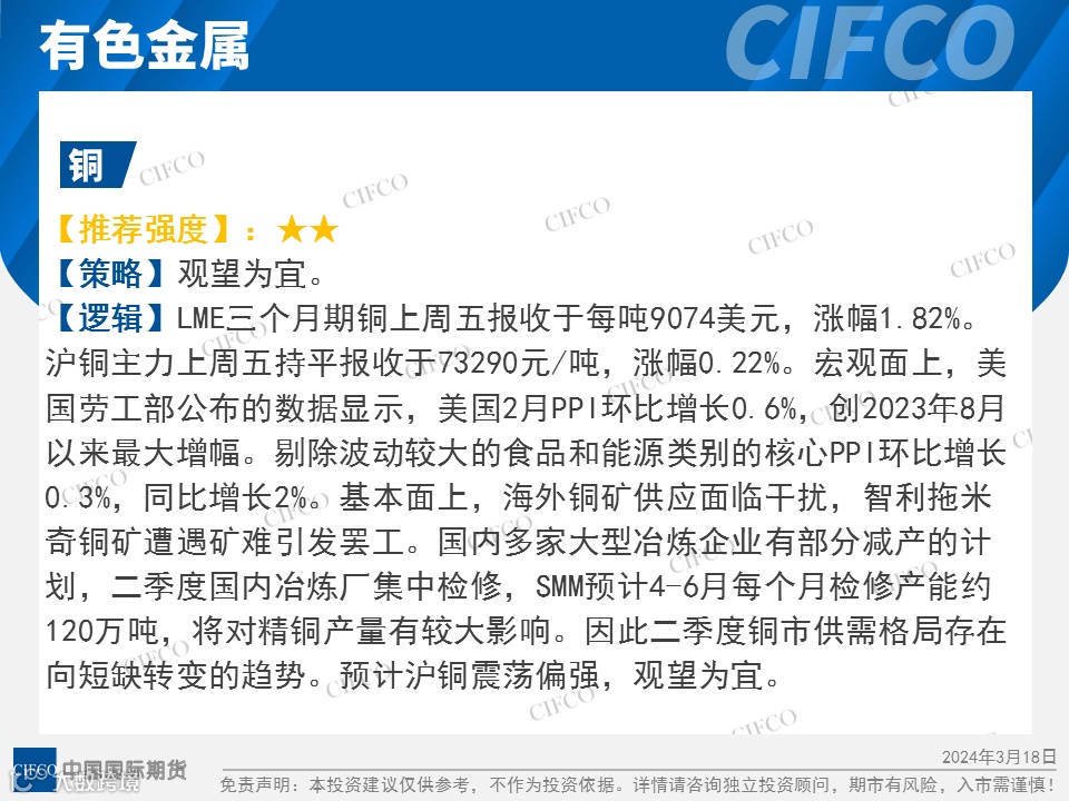 中期早知道 | 沪铜橡胶小幅上涨  工业硅苹果下跌 中国国际期货福建分公司