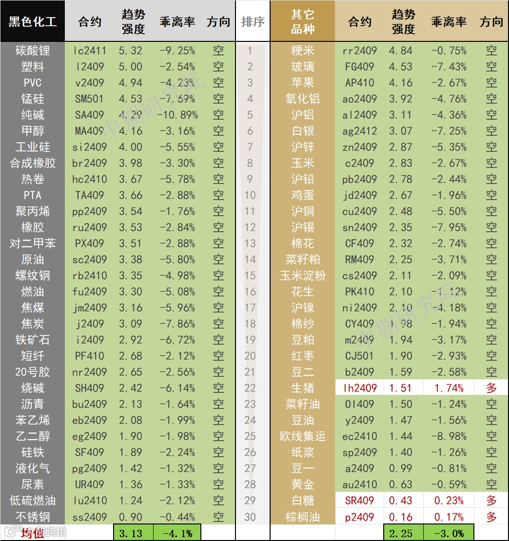 中期商品趋势榜 | 碳酸锂、塑料、PVC、玻璃、锰硅、纯碱空头偏强 (0730)