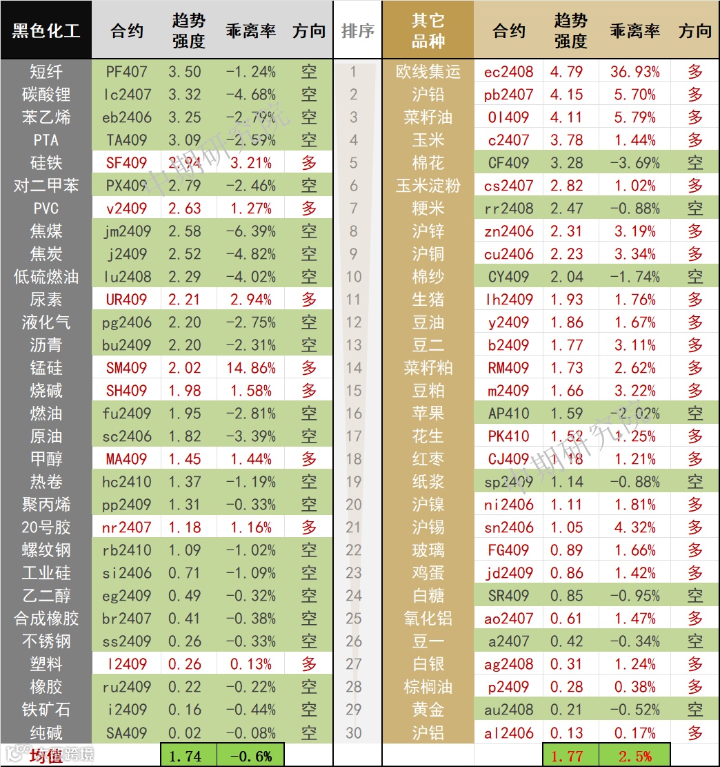 中期商品趋势榜 | 短纤、碳酸锂、棉花空头强势(0514)