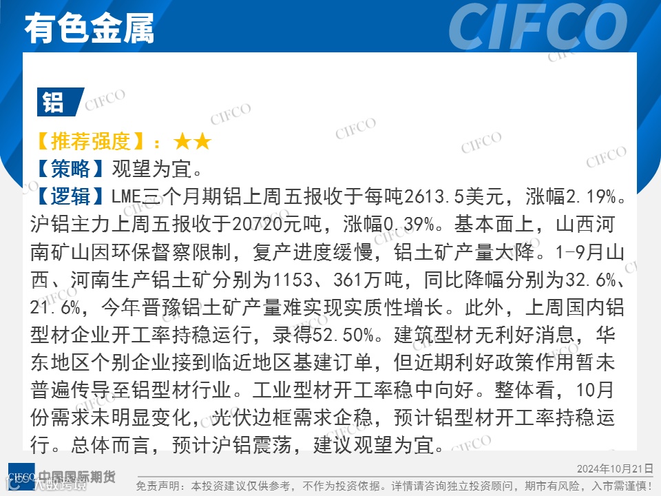 中期早知道 | 黄金、烧碱震荡上涨  生猪弱势下跌 中国国际期货福建分公司