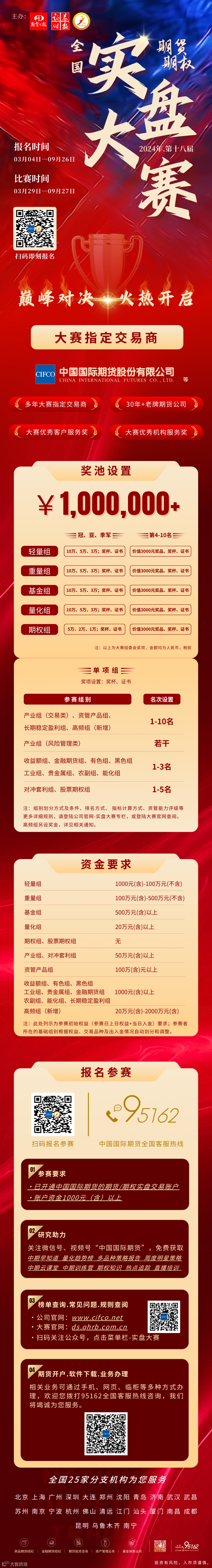 3.本届大赛由第十八届全国期货(期权)实盘交易大赛组委会负责运行,比赛规则以及其他比赛相关事项由大赛组委会负责解释。大赛组委会对比赛规则拥有最终解释权。